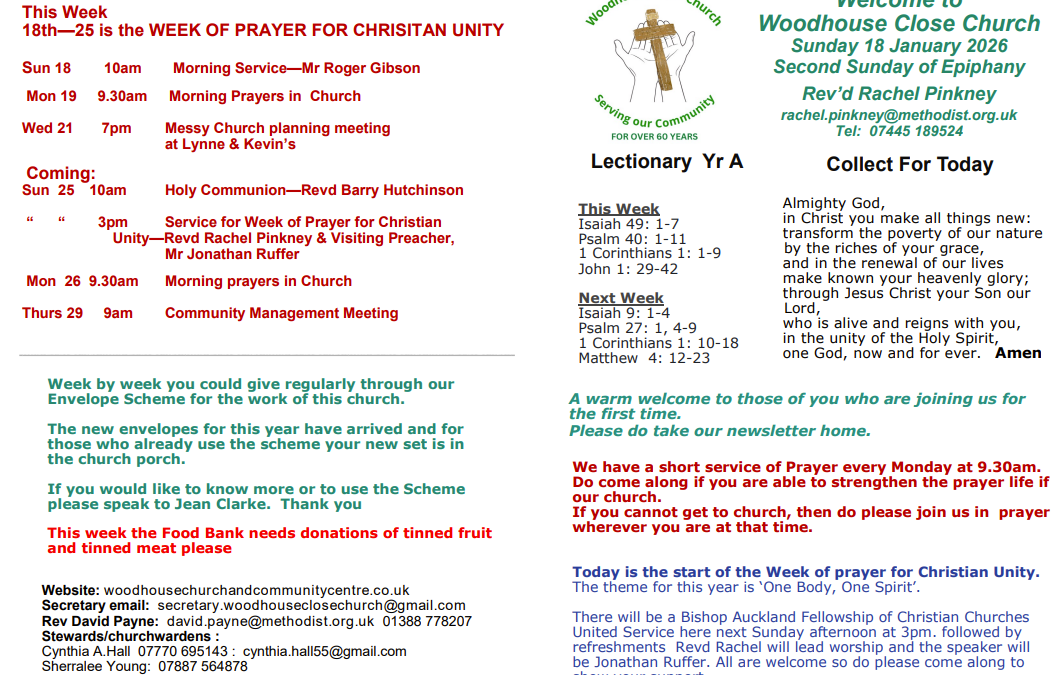 Church Community Centre Co-OrdinatorM/s Anne RamshawTel: 01388 450838Email: whclosecomm@gmail.com