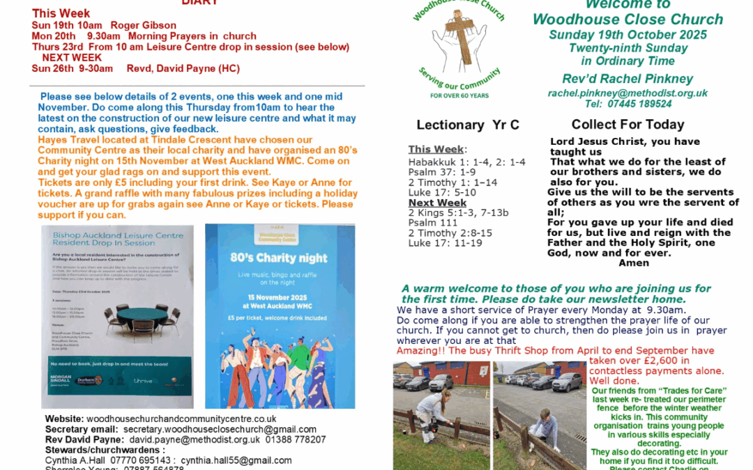 Church Community Centre Co-OrdinatorM/s Anne RamshawTel: 01388 450838Email: whclosecomm@gmail.com