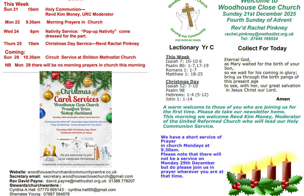 Church Community Centre Co-OrdinatorM/s Anne RamshawTel: 01388 450838Email: whclosecomm@gmail.com